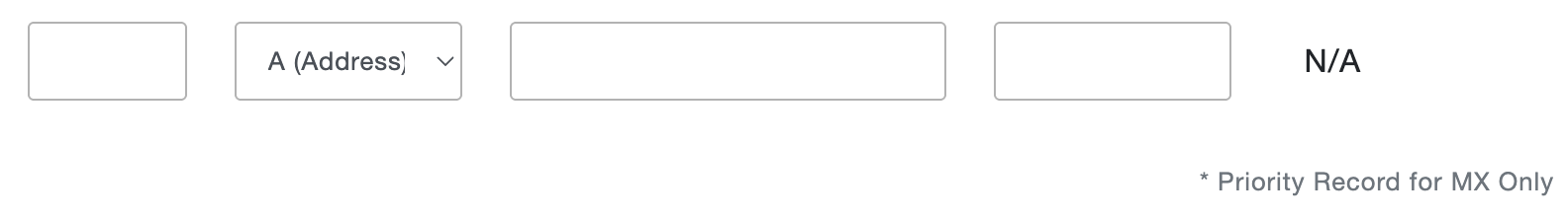 The second box is the DNS type (A records, CNAME, AAAA, MX, TXT)